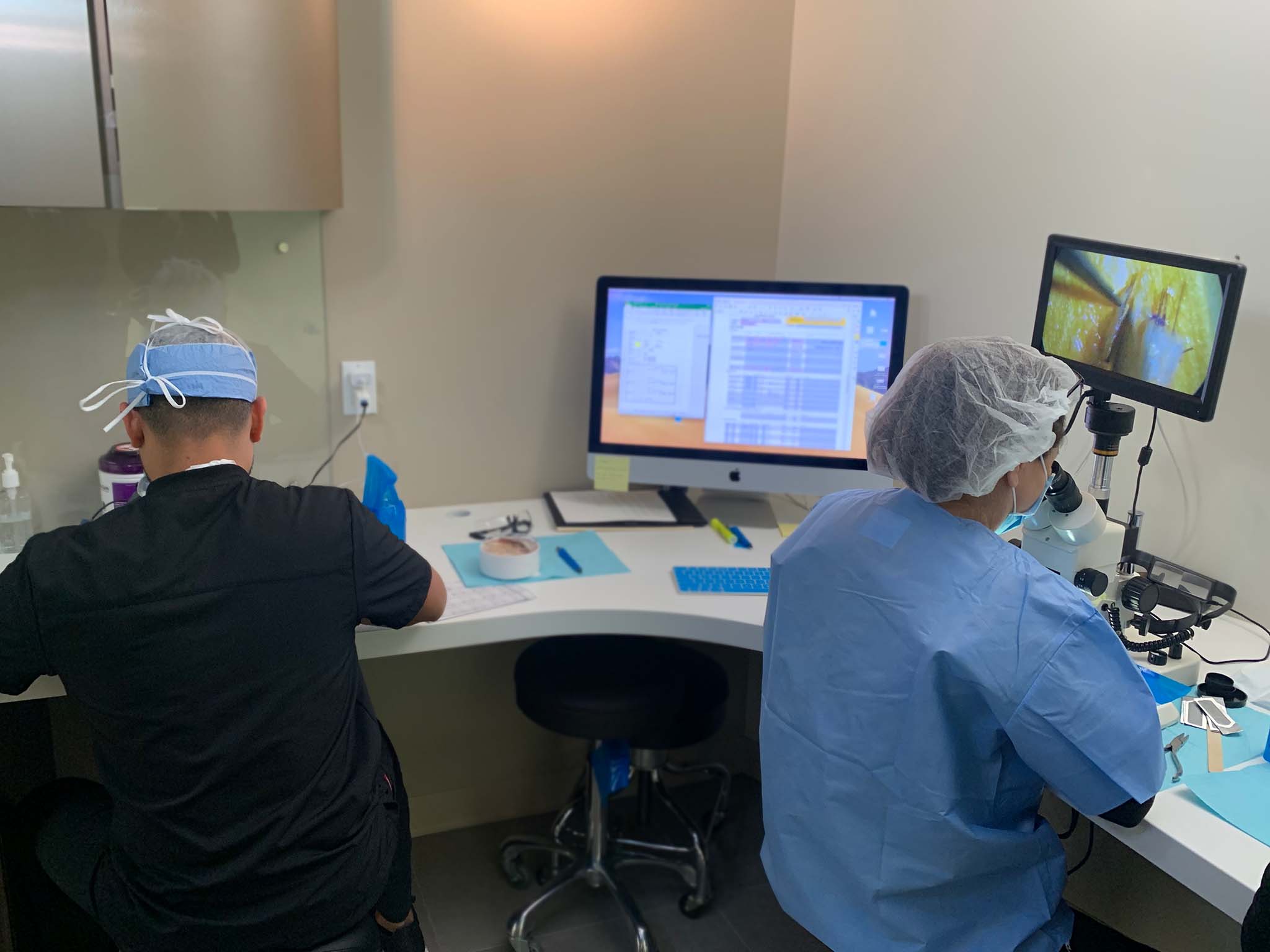 As mentioned above, the medical techs prepare the grafts while Dr. Pak artistically creates tiny pin prick size incisions and determines the direction in which the hairs will be implanted. In many cases he creates 2000-3000 sites for implantation.