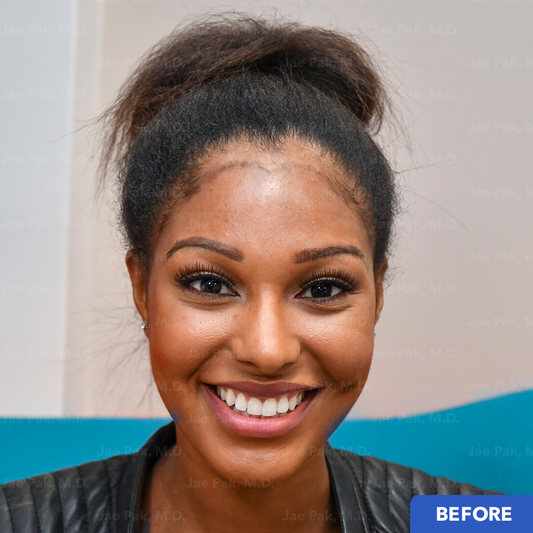 Actual Jae Pak M.D. Patient who received a hairline lowering procedure.