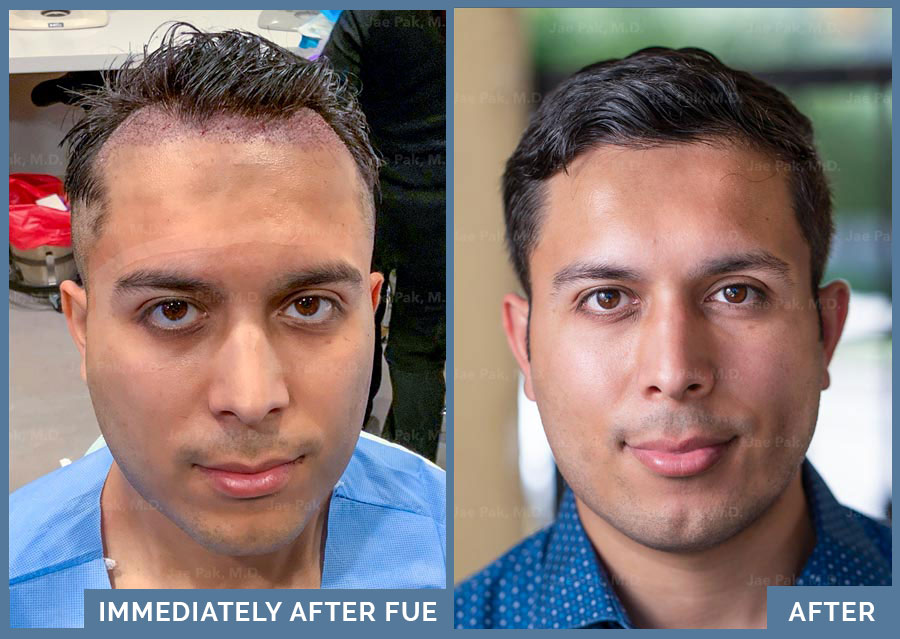 This patient of Jae Pak MD Medical was very self conscious about his receding hairline at such a young age. Many do not realize that hair loss can begin in your late teens and early 20s. He chose to have an FUE hair transplant procedure to create a stronger hairline and fill in the temples.
