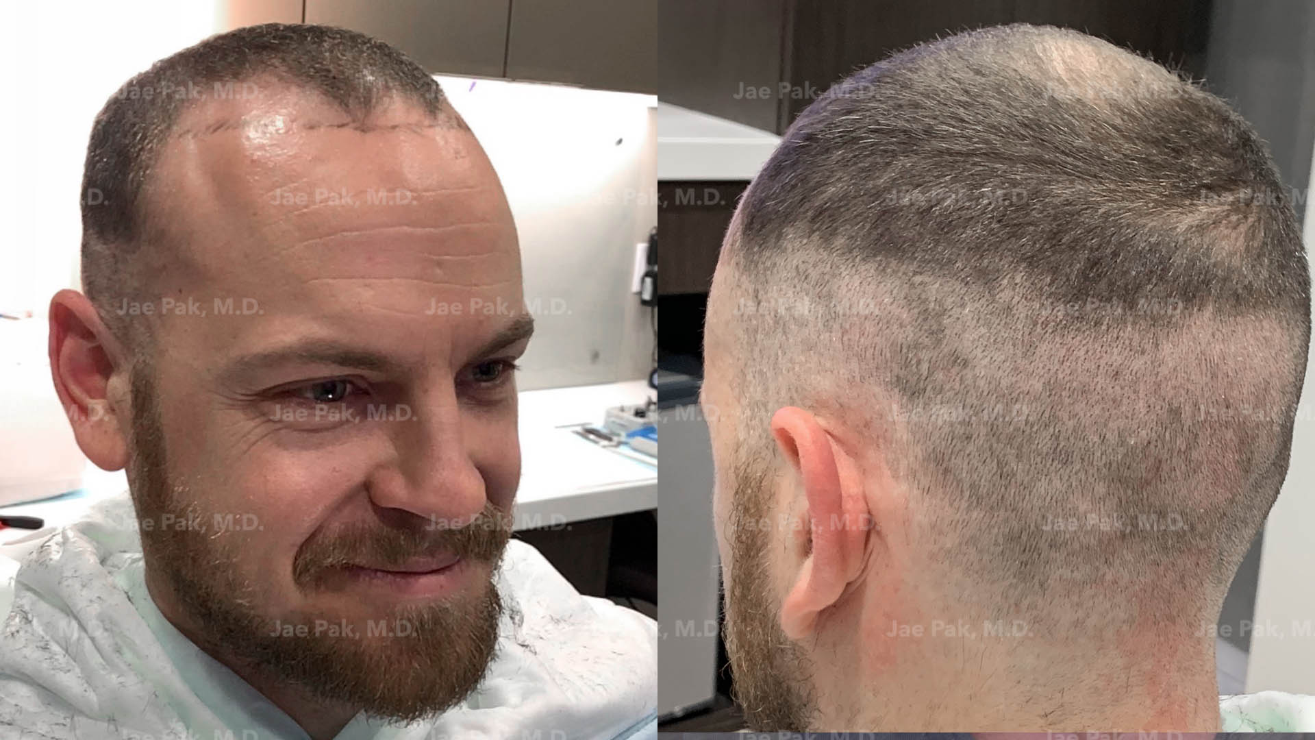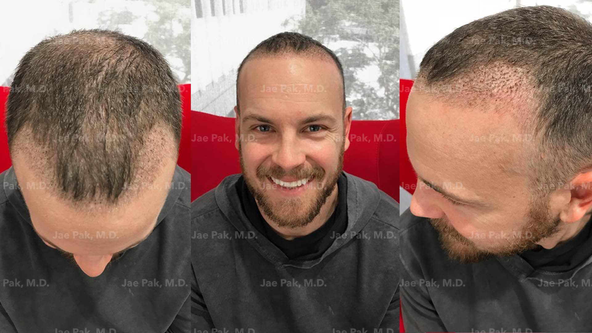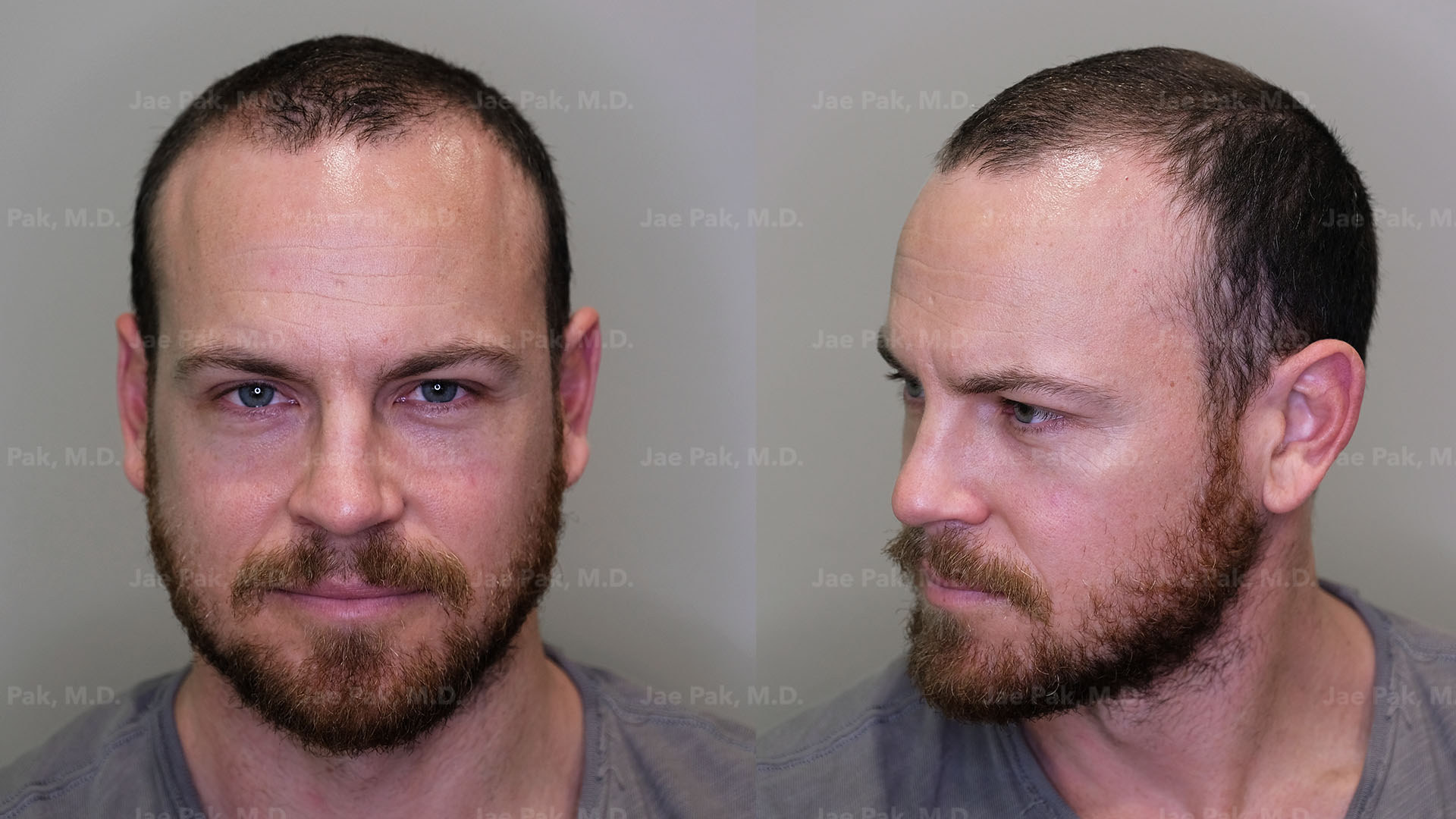 This patient of Jae Pak, M.D. is an actor who wanted to be able to wear his hair long or short, for any role. He needed to make sure there were no visible scars that would show on camera. He also wanted to fill in the areas where his beard did not connect. FUE and Dr. Pak gave him the results he had hoped for!
