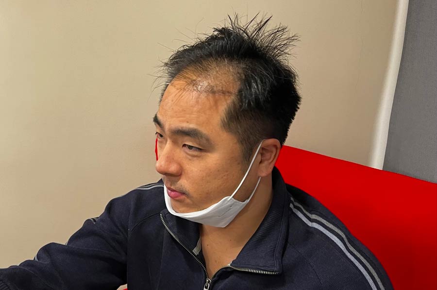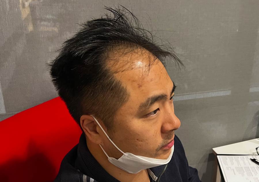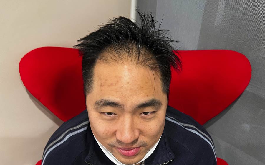 This patient began losing his hair at a young age and was almost completely bald around his hairline and crown before the age of 40.