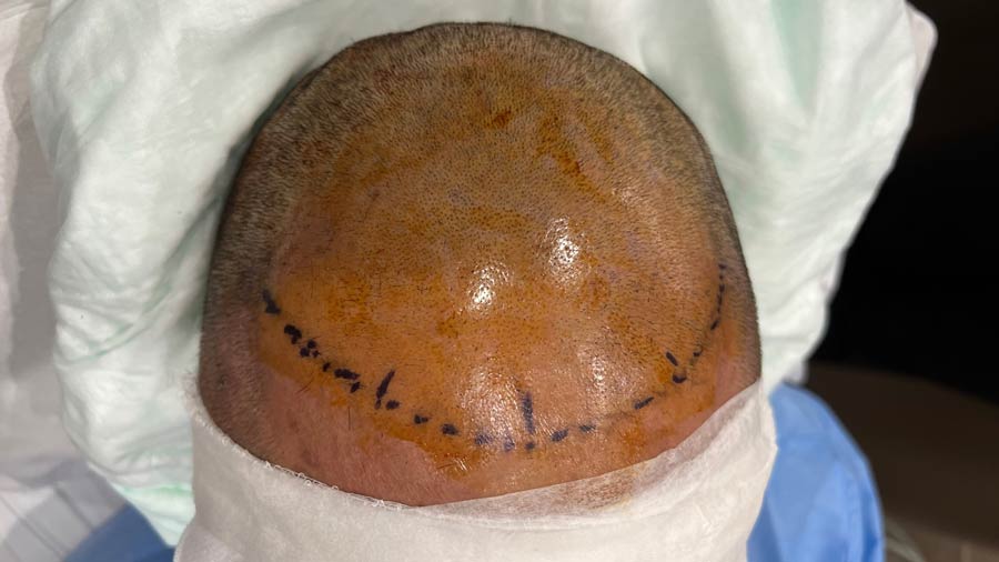 For FUE, you have the option to shave the sides and back of the scalp only, in a fade style with length on top, or you can shave the entire scalp so it looks like a natural buzz cut after the procedure. We can shave the hair in the office or you can do so in advance to a zero guard in length.