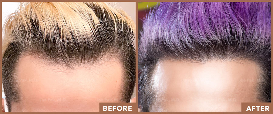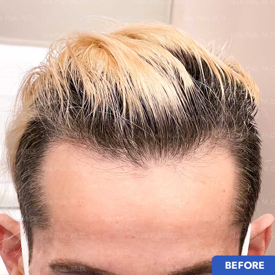 This Jae Pak MD Medical patient has great hair, but wants to make sure he maintains his youthful hairline. Through an FUE hair transplant he was able to keep a strong looking hairline and avoid recession in his temples.