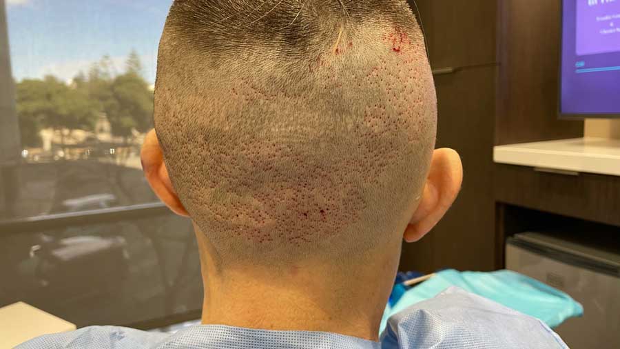 Immediately after FUE Hairline restoration with Jae Pak, M.D.