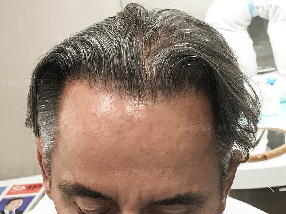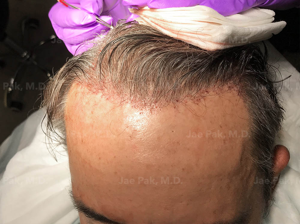 One of our patients, Frederic Marq, received multiple procedures (FUT Strip, FUE and Scalp MicroPigmentation) over many years to restore his receding hairline. The FUT (STRIP) procedure involves harvesting donor hair follicles with an approximately 6 cm incision in the back of your head. This incision scar is hidden under your remaining hair as long as you keep some length to the hair on the back of your scalp. Follicular Unit Transplantation (FUT) is considered by the most highly skilled hair transplant doctors as the best method in ensuring the maximum hair grafts available over a patient’s lifetime. The best quality hair grafts can be removed using this procedure as there is less risk of transection than using the FUE method.