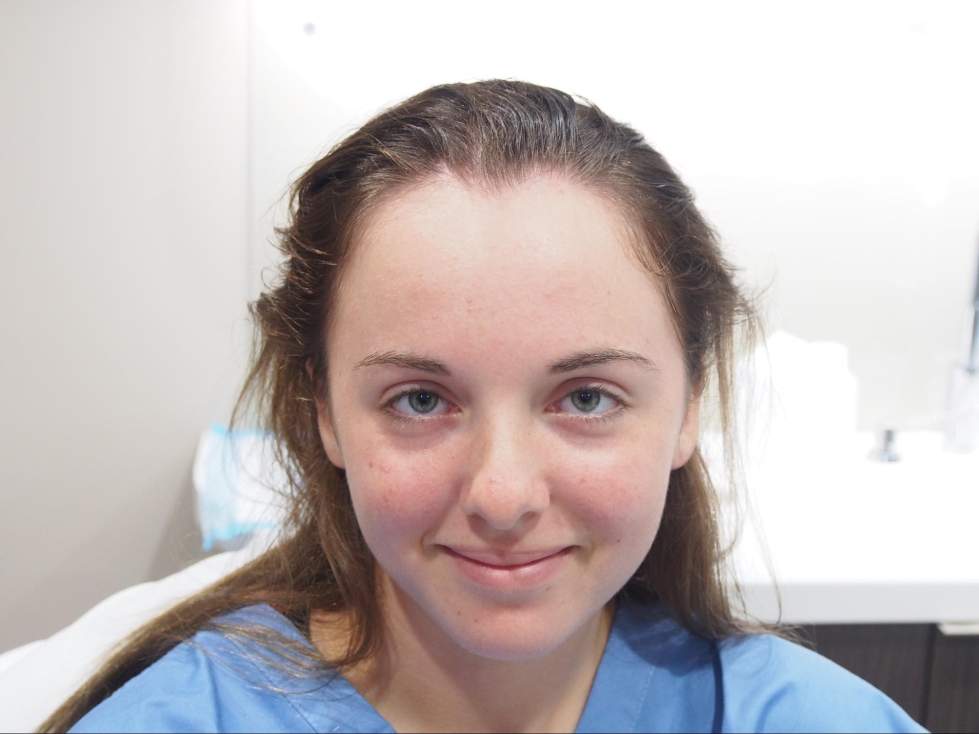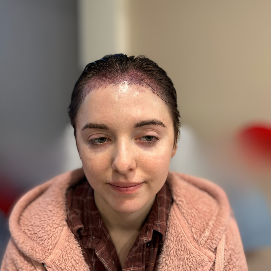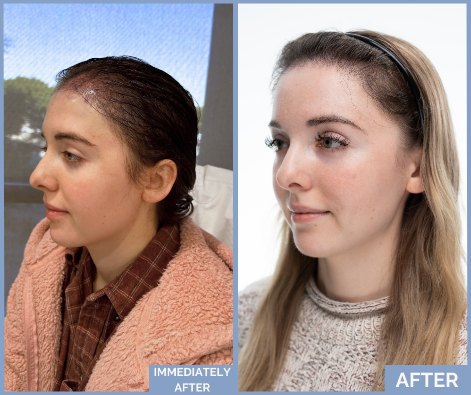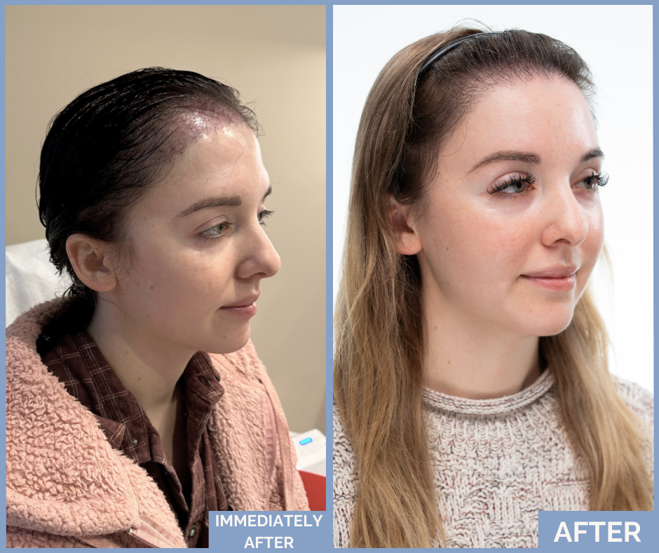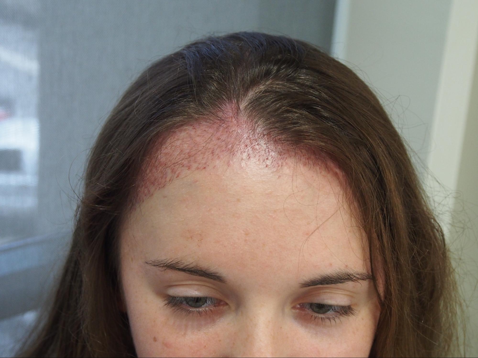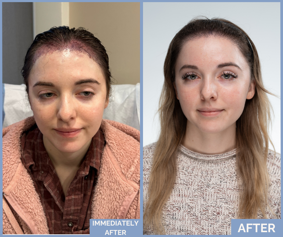 .This patient chose to undergo a hairline lowering procedure with Dr. Jae Pak, helping her feel more confident and in control of her appearance. With her new look, she now enjoys experimenting with bold, new hairstyles. As she has very thin, fine hair, she opted for two surgeries, the first to redefine the hairline and the second to add density.