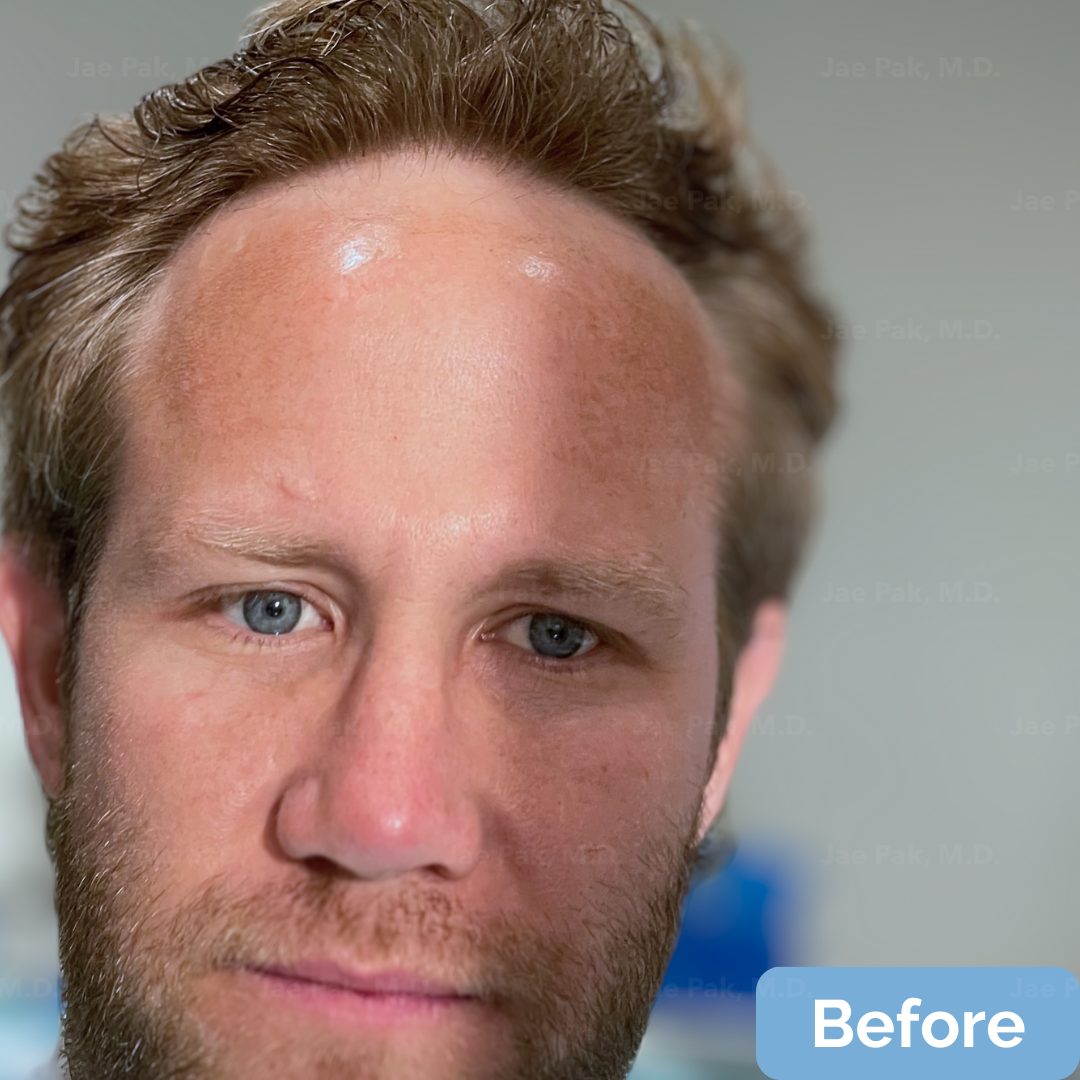This patient wanted to fix and lower his receding hairline stemming from genetics, a common concern for many.