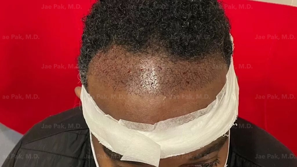 This patient of Jae Pak MD Medical wanted to create a younger look by revitalizing his hairline. He chose the FUT (STRIP) method as he wanted to make sure he had the most grafts available. He did not mind having a linear scar as he did not ever intend to wear a buzz or fade haircut.