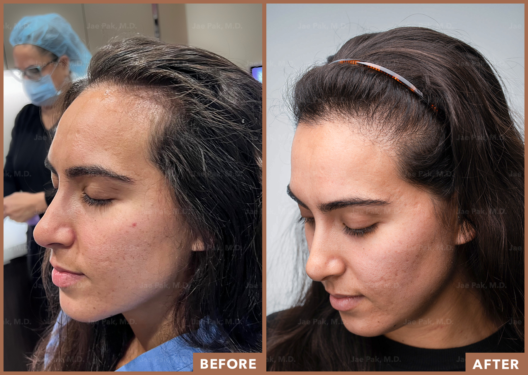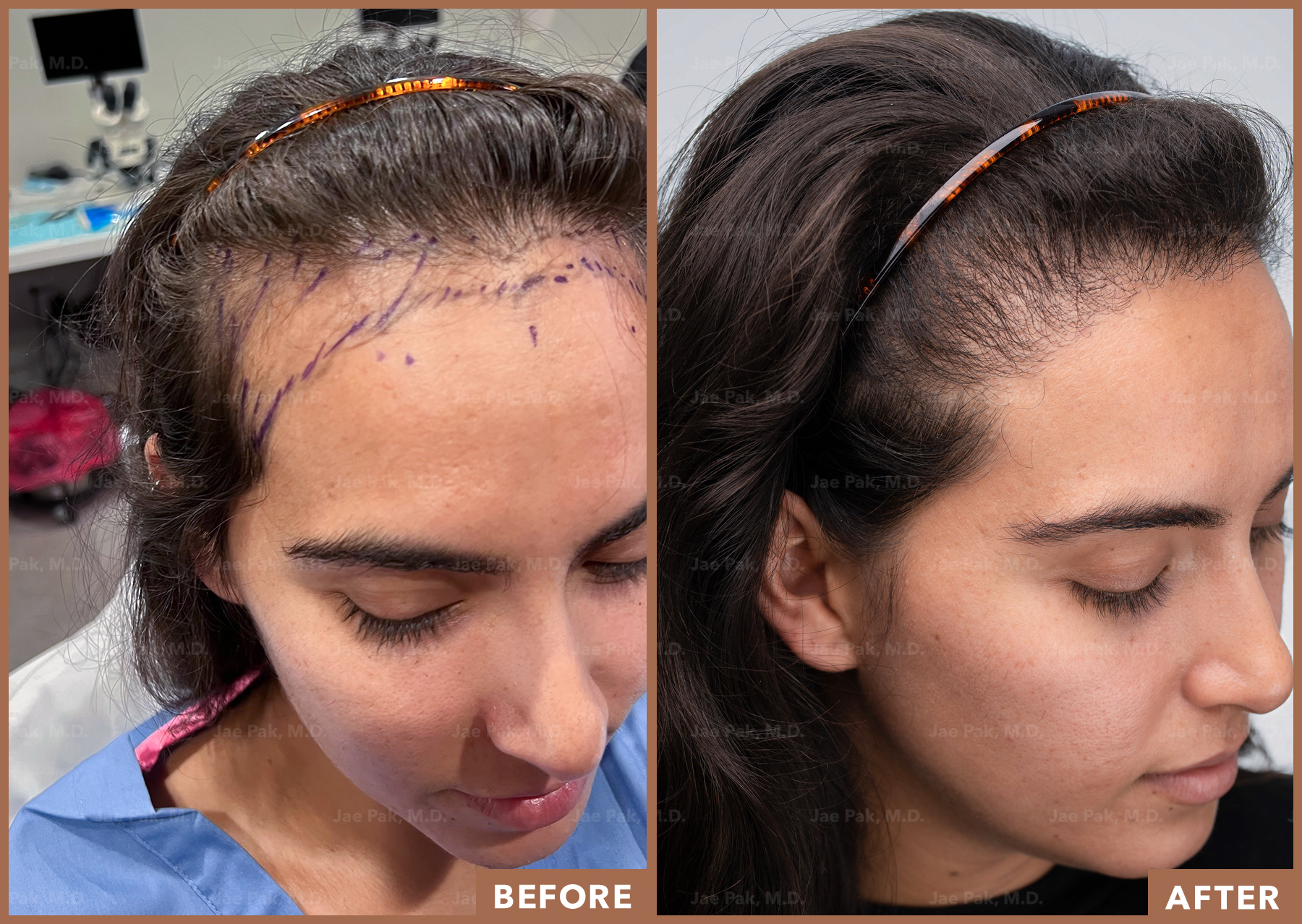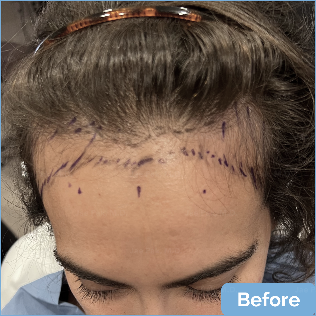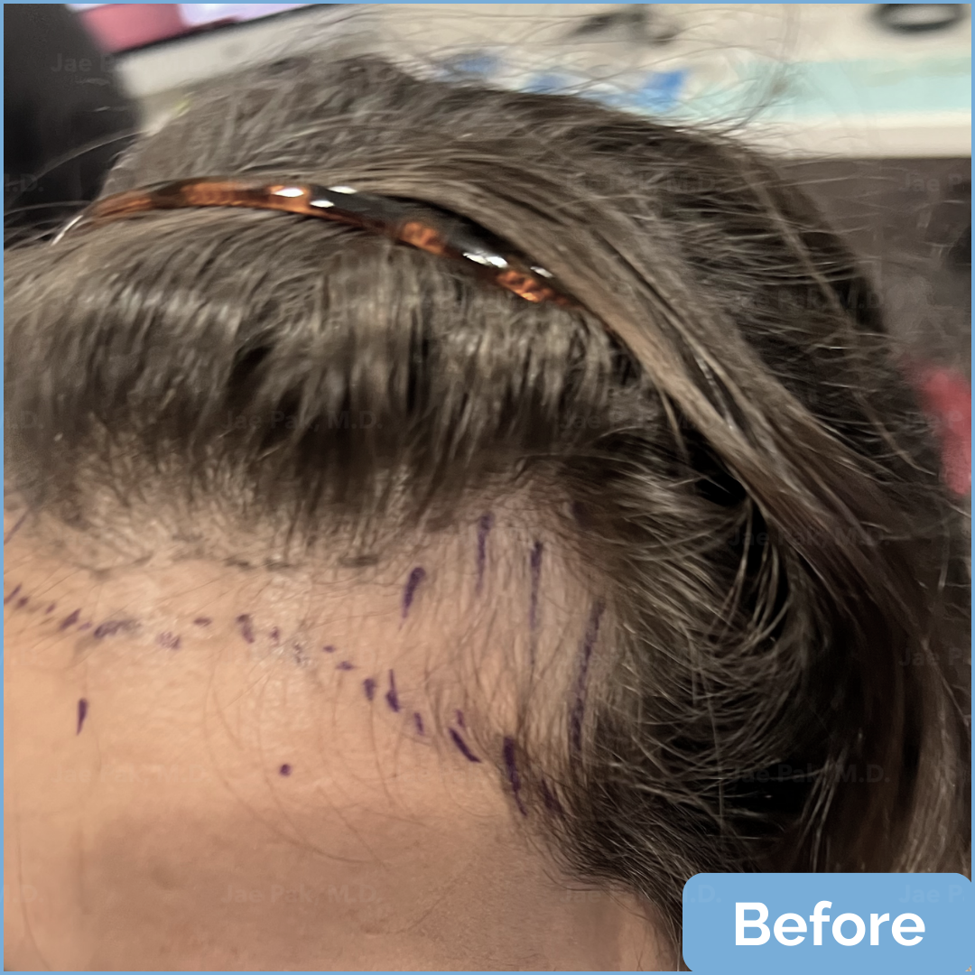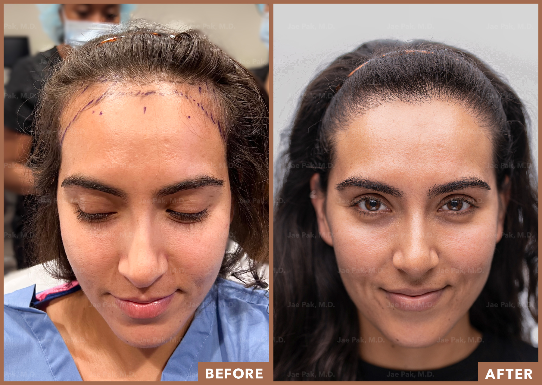 This patient underwent a hairline lowering procedure with Dr. Jae Pak to boost her confidence and feel comfortable with her appearance. Now, whether her hair is styled up or down, she exudes confidence. Dr. Pak’s personalized approach ensures that each patient achieves their desired look through careful consideration and collaboration.
